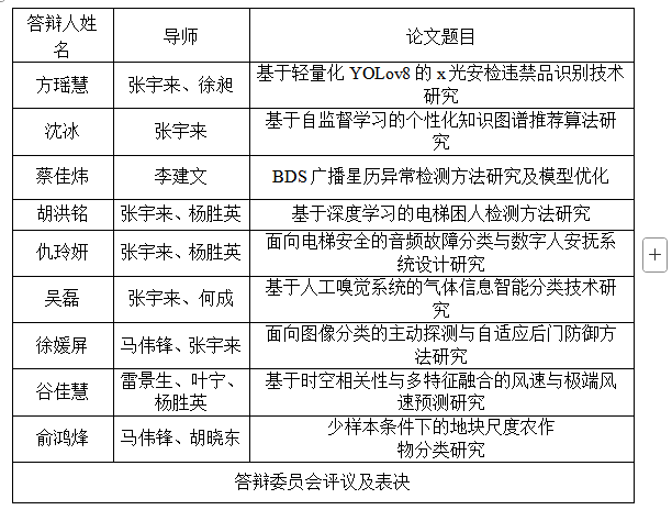 答辩委员:吴建锋(浙江树人学院,副教授),马伟锋,岑跃峰,胡晓东,张宇来,何成,李建文