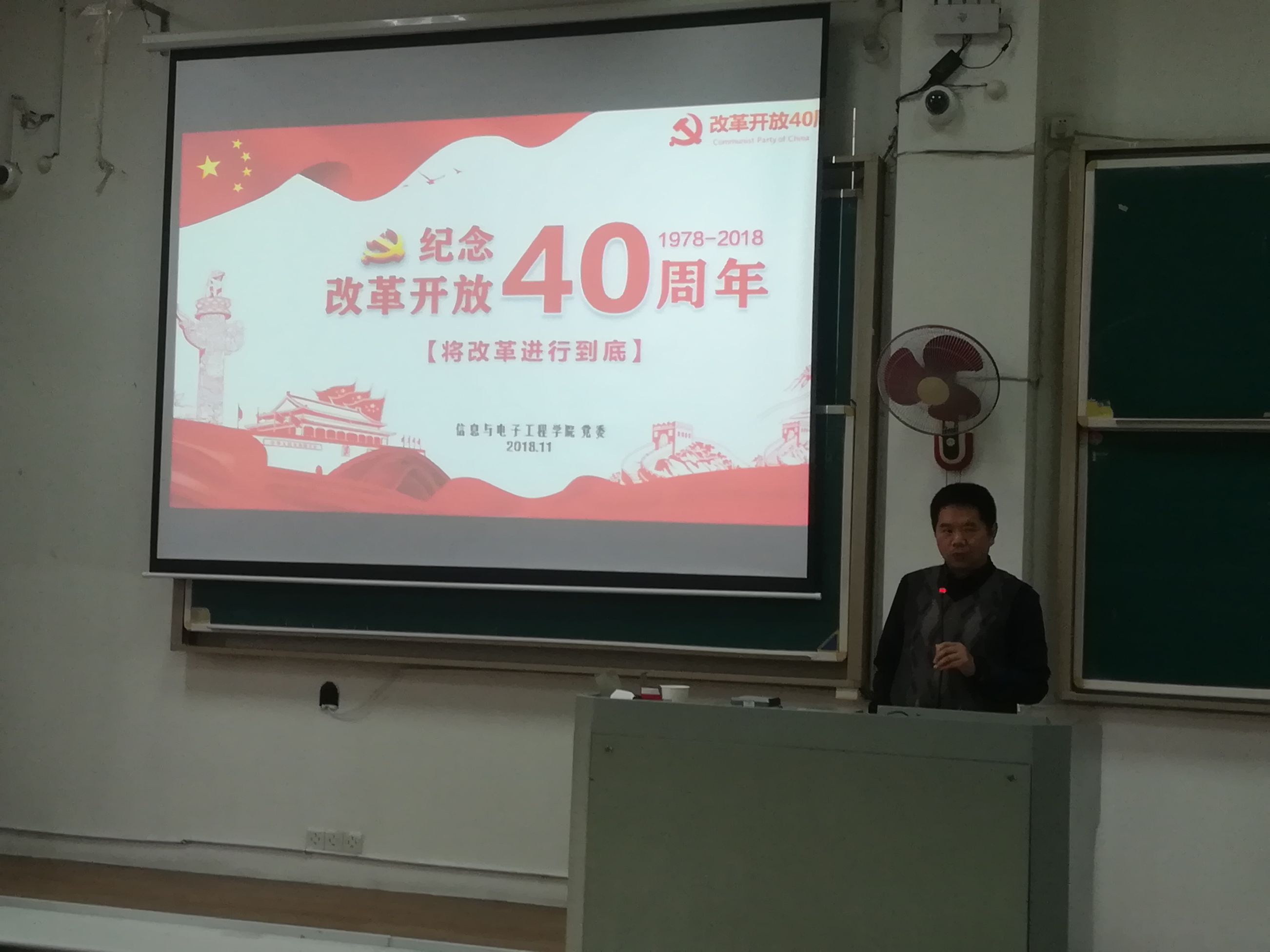2018年11月15日下午13点30分,信息与电子工程学院第三次党课在A3—125拉开帷幕,本次党课由学院党委书记傅晓炜老师主讲。