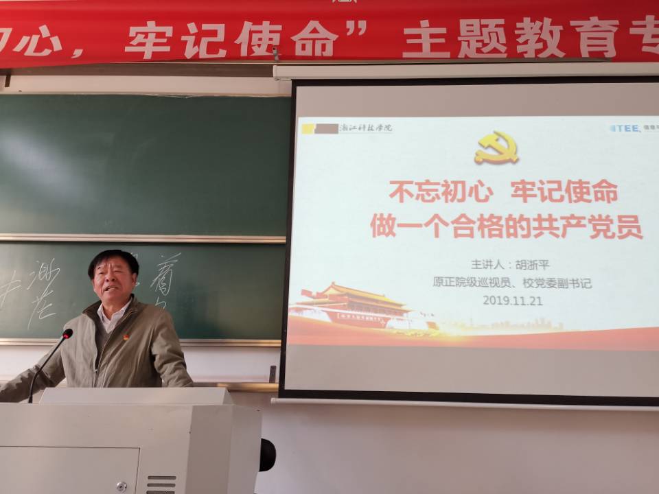 为促使学员深入了解中国共产党党史,知史明鉴,不忘初心,信息与电子工程学院二十六期党校第三次党课暨“不忘初心,牢记使命,做一个合格的共产党员”主题教育专题教育学习报告会于11月21日下午14:20在C1-651举行。第二十六期党校全体学员参加了党课学习。本次党课由原正校级巡视员、校党委副书记胡浙平老师主讲。