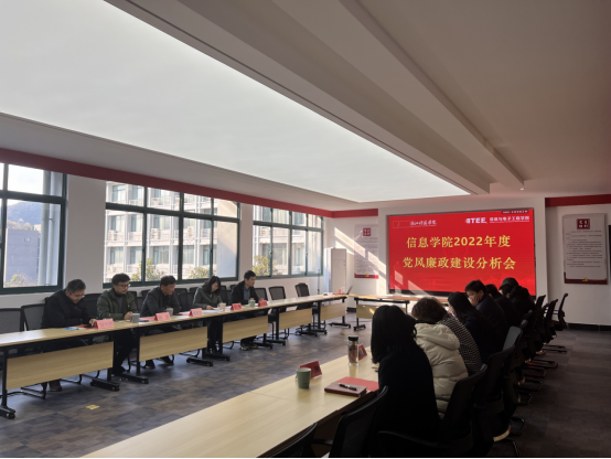 2023年2月21日,信息与电子工程学院召开2022年度党风廉政建设分析会。纪检监察室周佳灵到会指导,学院党政领导班子成员参加会议,学院系(部)负责人及相关内设机构负责人、组织员等相关人员列席会议,会议由学院党委书记张蕾主持。