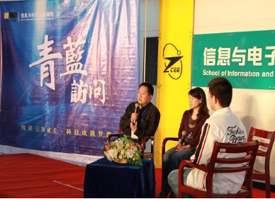 2010年10月7日下午两点,由信息学院主办的校庆系列节目青蓝访问第二期在C1大厅顺利进行。参加此次访问的嘉宾分别是毕业于80,90以及00年代的信息学院校友代表。到场的还有信息学院院长张森老师、党总支书记杨春亭老师、常务副院长郑志军老师、副院长叶绿老师、党总支委员蒋邢飞老师和全体辅导员老师,以及10级新生代表。
