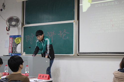 “数风流人物,论时事热点,还看今朝。”4月12日晚6时,由信息学院中研会主办的党章学习小组活动--时政评论大赛在A1--102准时召开。