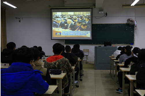 为深入学习贯彻全国高校思想政治工作会议精神,教育引导广大团员自觉向党中央看齐,向习近平总书记看齐,更加紧密地团结在以习近平同志为核心的党中央周围,做好大学生思想引领和价值引领工作, 中国特色社会主义理论体系研究会信息学院分会组织学院共青团员代表在A2-118共同学习了习近平总书记在全国高校思想政治工作会议上的重要讲话。