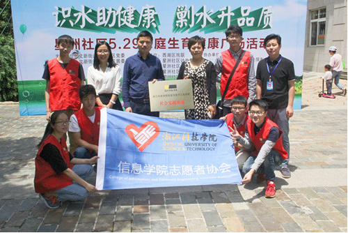 仪式开始前,志愿者们积极投身“识水助健康 剿水升品质”----星洲社区大型广场志愿活动,帮助社区居民修理电器,引导社区居民排队修理雨伞,刀具等物品,带领他们排队扫码,领取奖品,了解“劣V类水”的危害等。同时,志愿者们也利用专业所长,免费提供电脑、手机等设备的硬件检测、软件安装等服务,还为社区居民提供免费手机贴膜等。这已经是信息与电子工程学院志愿者在星洲社区服务的第三个年头,3·5雷锋日、敬老爱老、剿灭劣五类水、人大选举等多种活动中都有他们的身影。