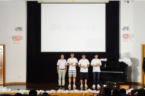接下来是何敏杰、陆凯杭、吴泽浩、李比乐队带来的歌曲串烧,各个歌曲的完美融合迎来了同学们热烈的掌声。