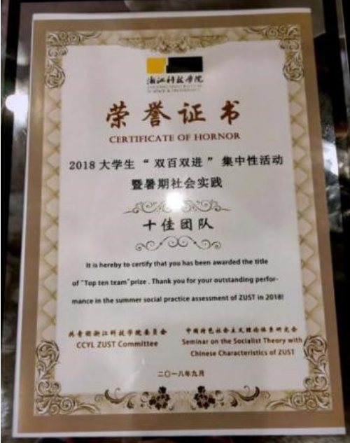 在所有的团队展示完毕后,主持人宣布评比结果,恭喜信息学院红色起航社会实践团队以总成绩第六的成绩获评浙江科技学院2018大学生“双百双进”集中性活动暨暑期社会实践十佳团队。