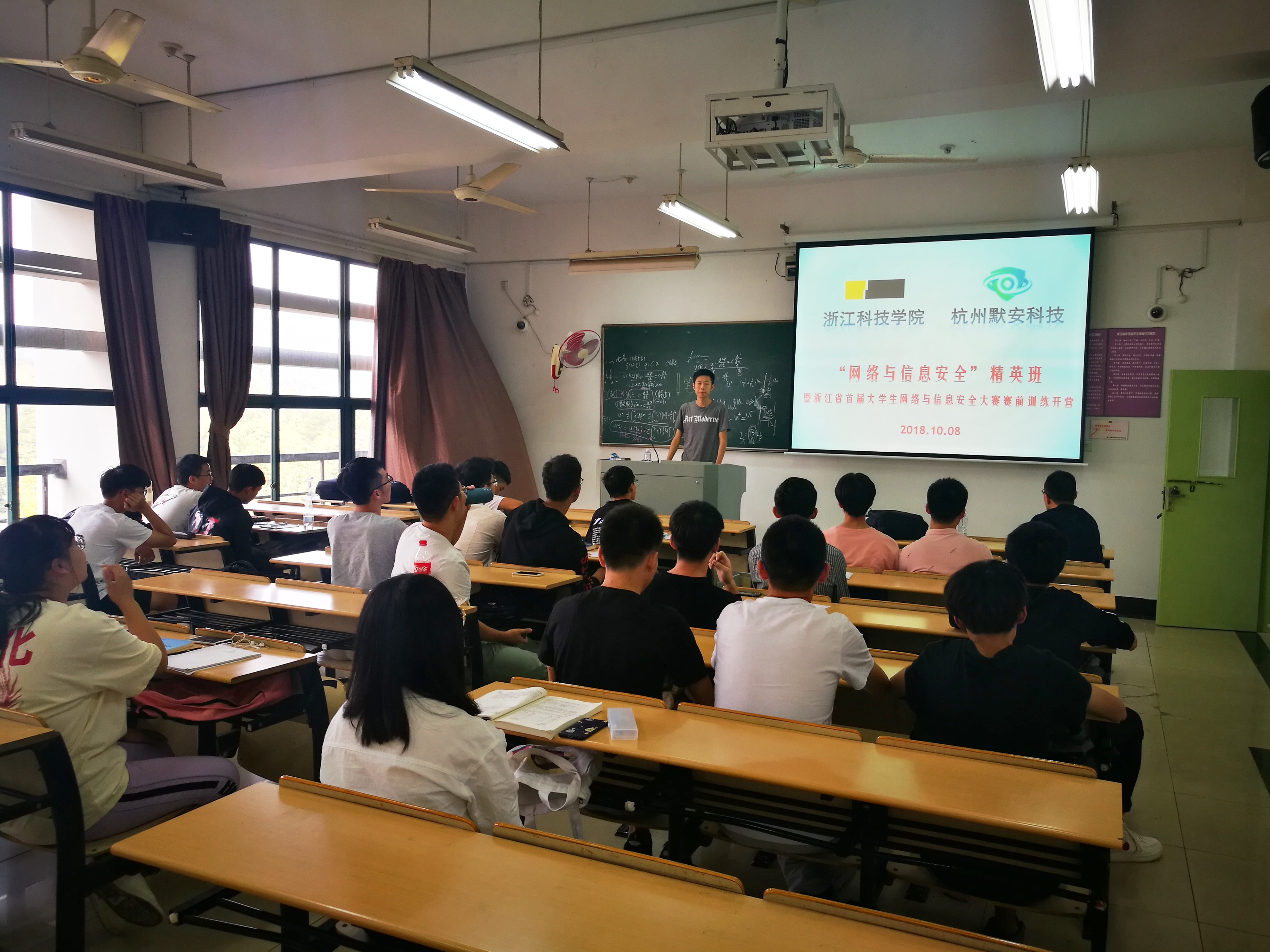 信息与电子工程学院与杭州默安科技联合举办的“网络与信息安全精英班”暨“网络安全竞赛训练营”开营,来自全校50多位同学参加开营课程。