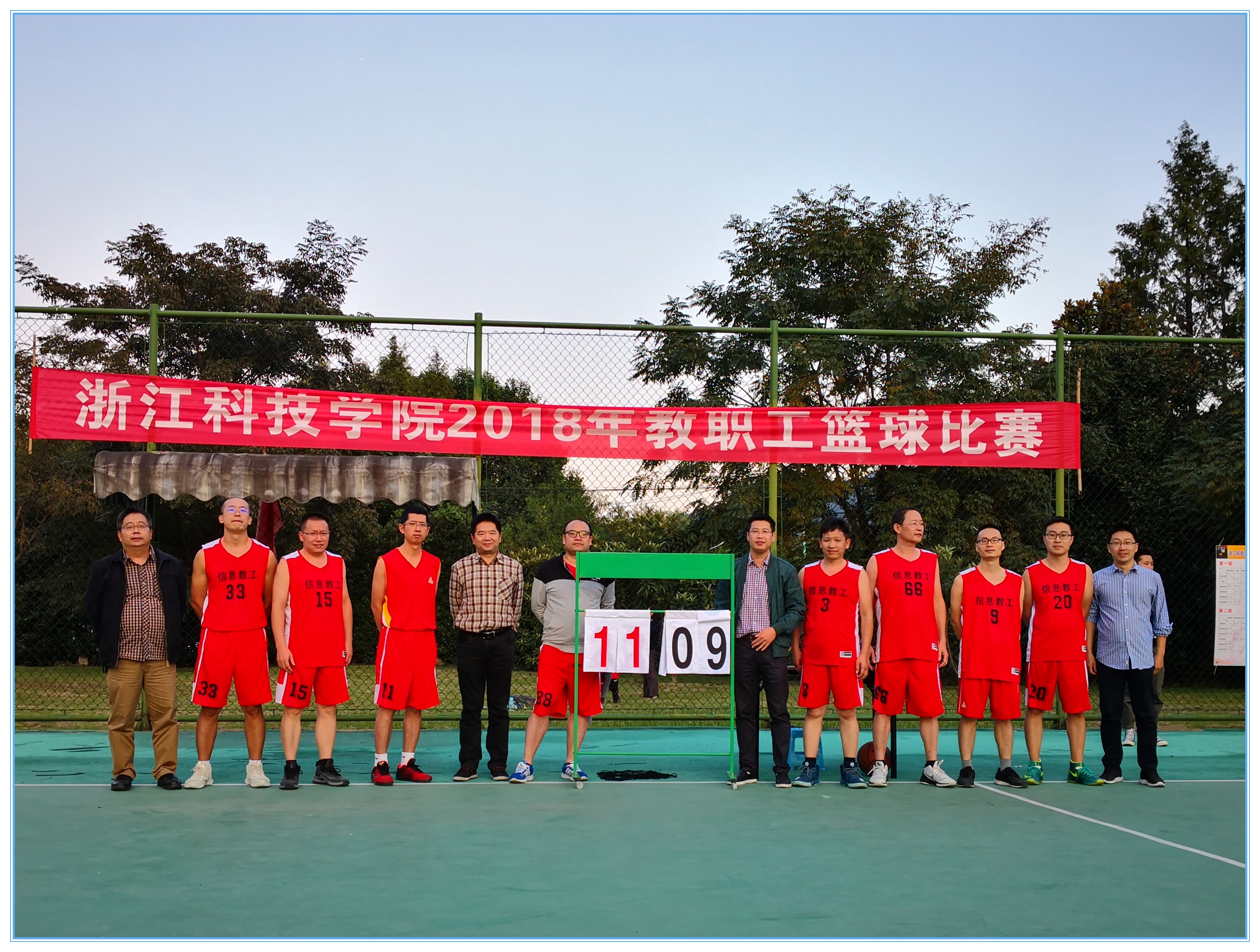 近日,学校2018年教职工篮球比赛刚刚落下帷幕。信息学院教工篮球队精心组织、奋力拼搏,展现了昂扬的斗志和进取的激情。