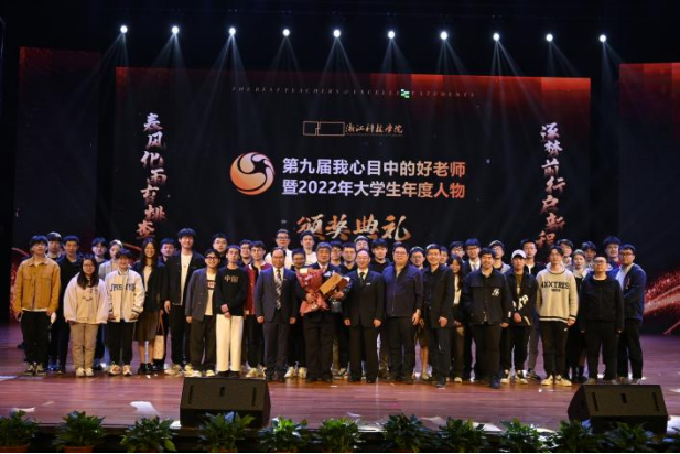 近日,第九届“我心目中的好老师”暨2022年“大学生年度人物”颁奖典礼隆重举行,校党委书记赵东福、校长陈建孟等校党政班子成员出席颁奖典礼。信息学院岑岗教授再度荣获“我心目中的好老师”称号,信息学院2018级校友、2021年大学生年度人物、2022年卓越学子奖学金获得者朱润锴为岑老师颁奖。