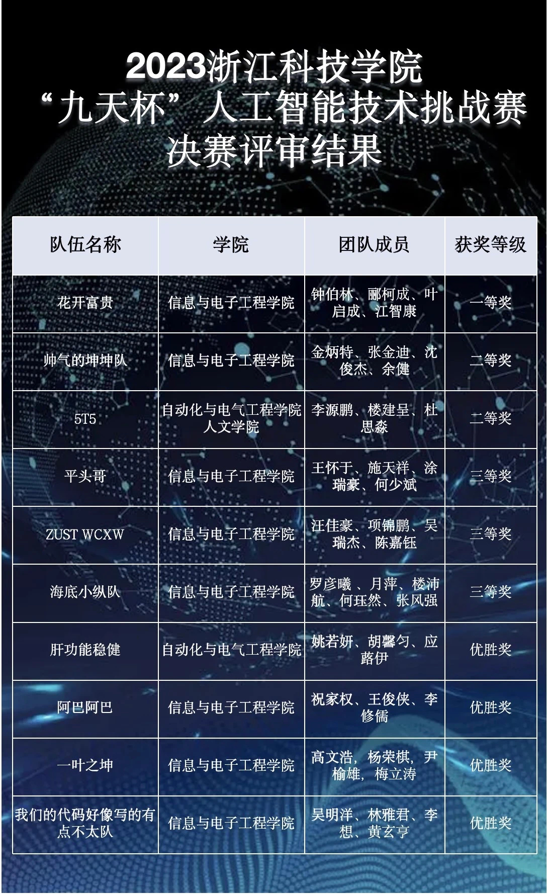 联合中国移动(浙江)创新研究院、杭州海康威视数字技术股份有限公司合作举办的2023浙江科技学院“九天杯”人工智能技术挑战赛于近日圆满落下帷幕。